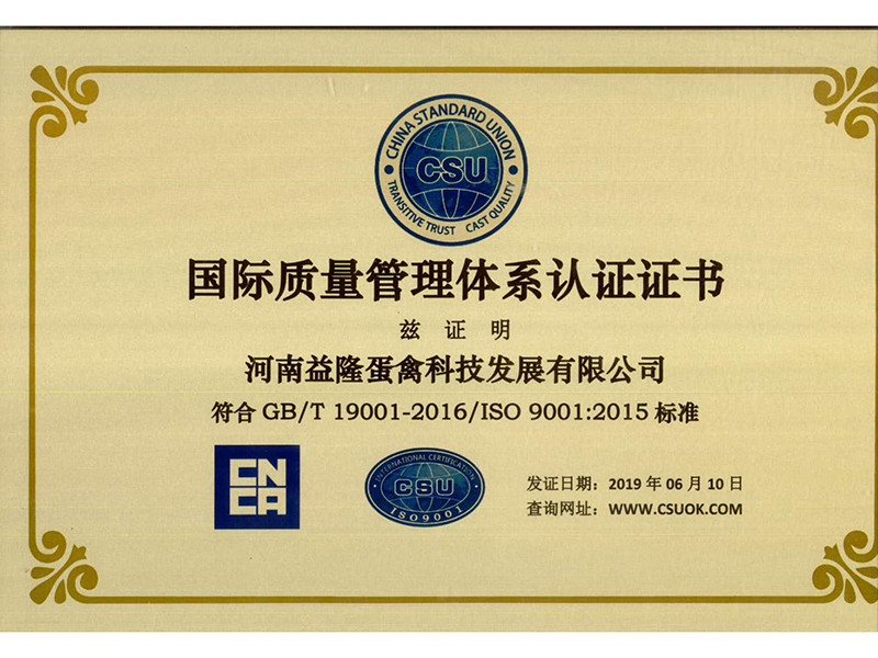 益隆禽业占地面积35亩,总养殖量5万余只,公司周围均是农田,周边无工厂和其他污染源,是粪污无害化处理和有 机化利用企业。益隆禽业原名河南益隆蛋禽科技发展有限公司,于2020年3月份成功申请为国家国字号企业——益隆禽业,与此同时益隆禽业响应农业农村局号召,开居了滑县农产品一张合格证。农产品合格证的实施事关人民群众身体健康,事关城乡经济的稳定和协调发展。